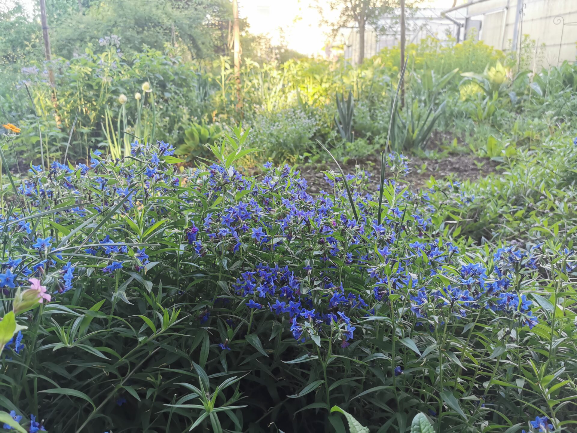 In der Schweiz findet man den blauroten Steinsamen (Buglossoides purpurocaeruleum) nur an ganz wenigen sehr warmen und trockenen Standorten. Unsere Mutterpflanzen stammen aus Dornéaz VS im sonnigen Unterwallis. Auf einer Wanderung haben wir die Pflanze nur dadurch entdeckt, dass kräftiges Blau aus dem Unterholz am Wegrand hervorleuchtete. Der Name stammt einerseits von den Blüten, die von purpurfarbenen Knospen zu Blau wechseln, anderseits von den Samen, die wie kleine weisse Steinchen aussehen.